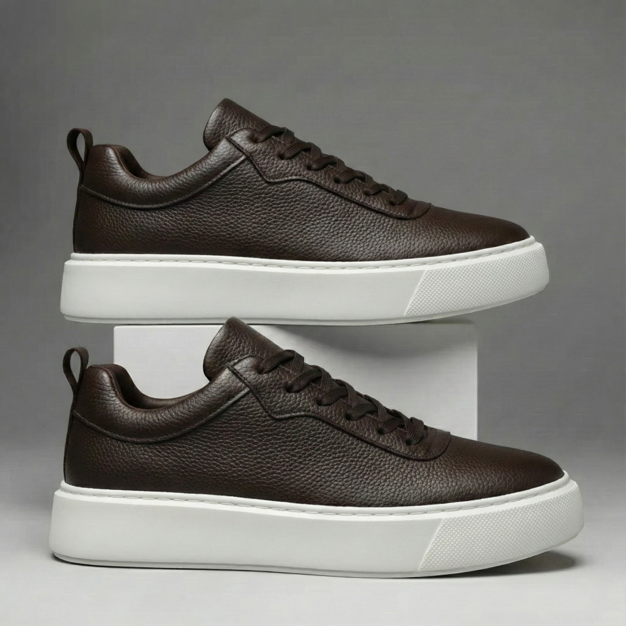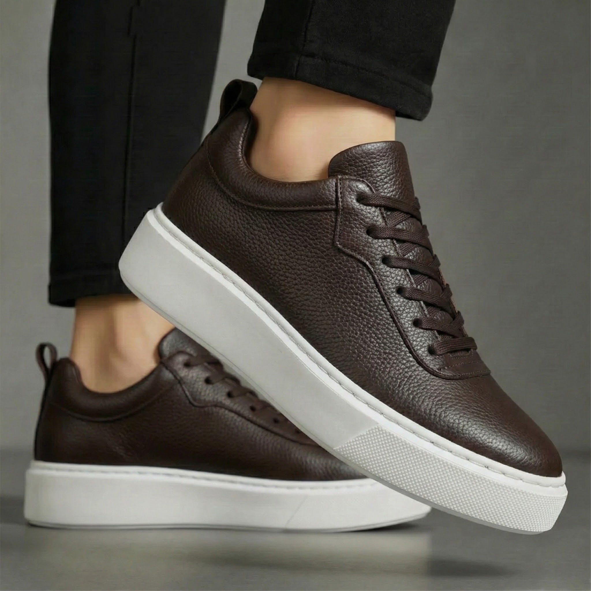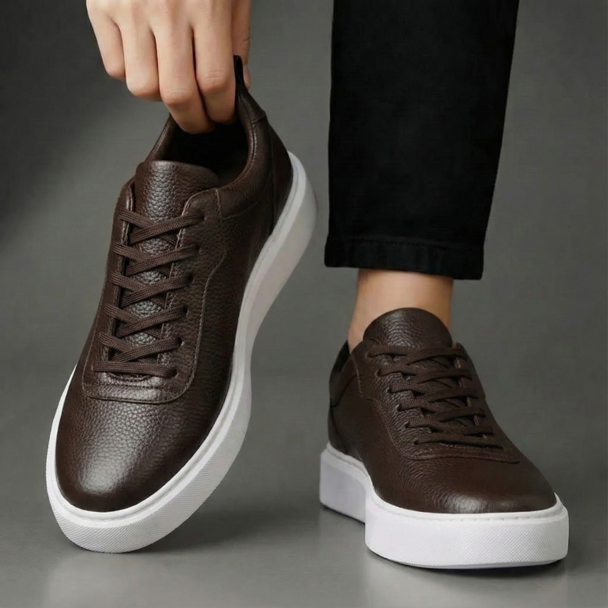 Sneakers Marron en Cuir - Semelle Légère Confortable
